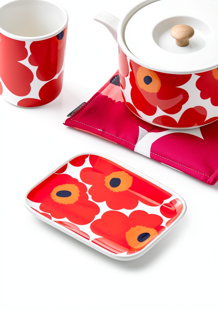 - Vibrant Unikko floral design in red, adding artistic flair to any table setting.
